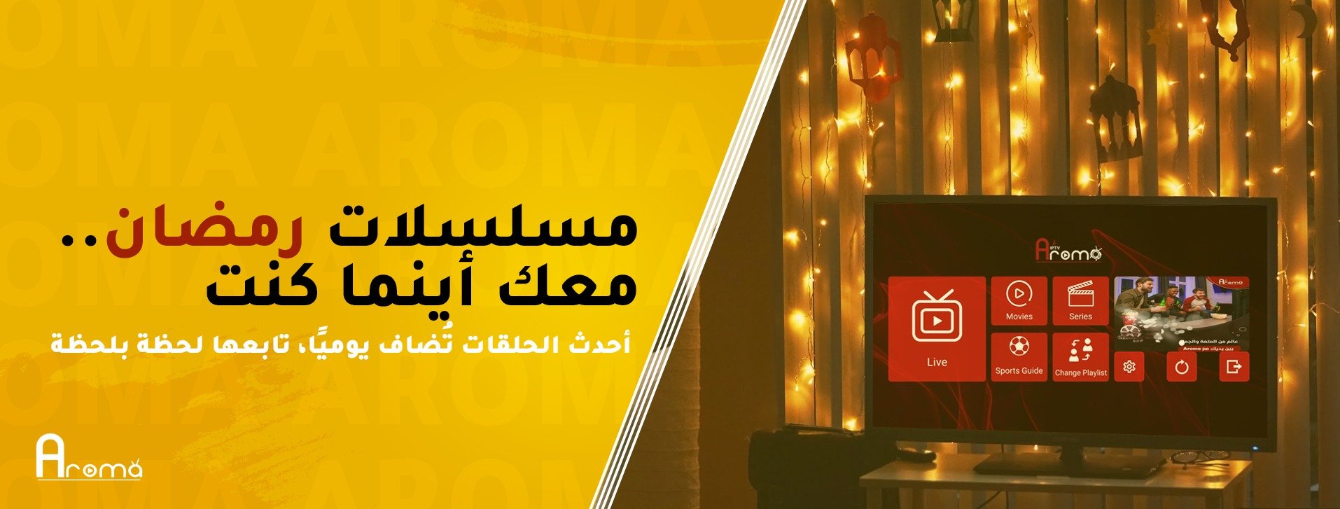 قم بتنزيل تطبيق Aroma TV على جهازك (تلفزيون، هاتف، أو كمبيوتر). أدخل بيانات الاشتراك التي حصلت عليها وابدأ في مشاهدة المحتوى فورً